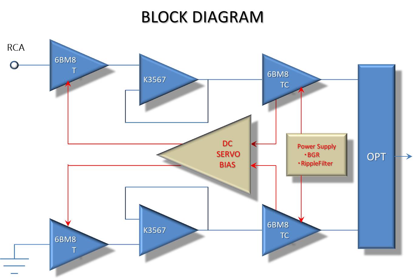 | その実現手段として、制御用として真空管専用高耐圧ディスクリートパワーオペアンプ(DPOA)を開発し、 | |